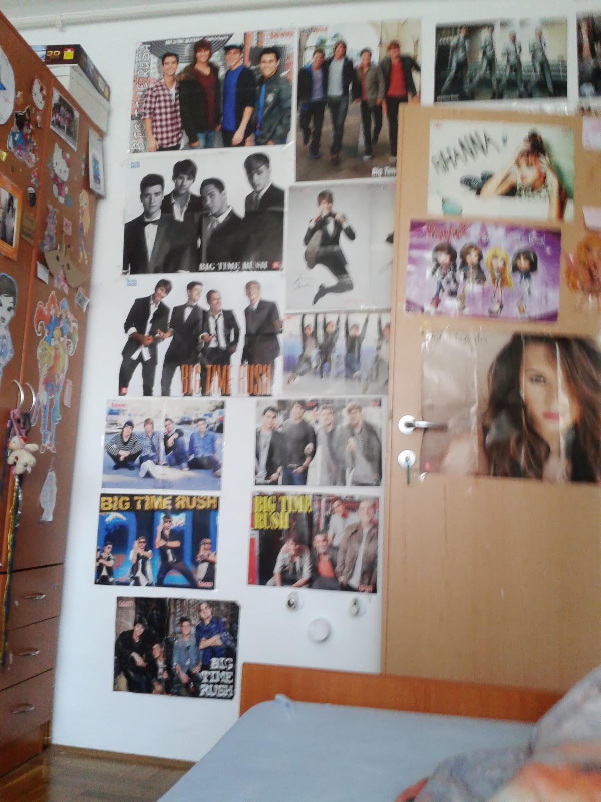 Ja msm. da sam ja najveći fan BTR-a jer mi je zid pun njihovih posteraaaaaaaa!Imam ih isse više mi niti ne stanuuuuuuu...Imam i njihov drugi album koji sam ne davno dobila za roćkas (jesam li to već spomenulaaa?????).I slala sam svoj sliku za ono u OK-u kao ja sam najveći fan ali nisu objavili šmrc....Ova desna slika je dio moje sobe gde su ti posteri :3 etooo Ali tu se sad vide vrata pa se ne vide oni posteri iza vrata-Ne morate govoriti da mi je soba neuredna..Znam tooo....Ok....Nebum duljila i voljela bih da počnemo s tim zadnjim dijelom posta!!!!!